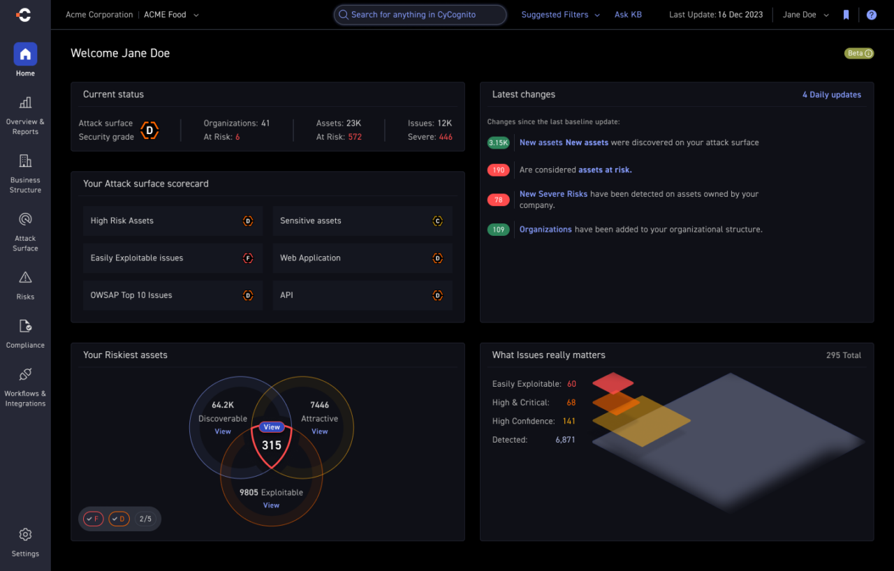 Key features of CyCognito include: