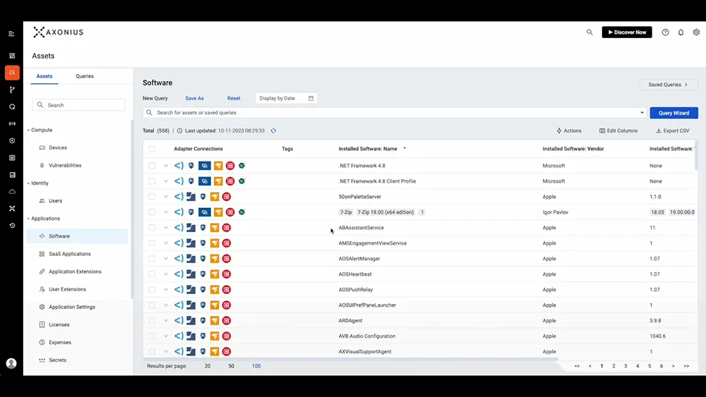 - Unified asset discovery and aggregation: Consolidates data from multiple sources to create an up-to-date inventory of cyber, software, and SaaS assets