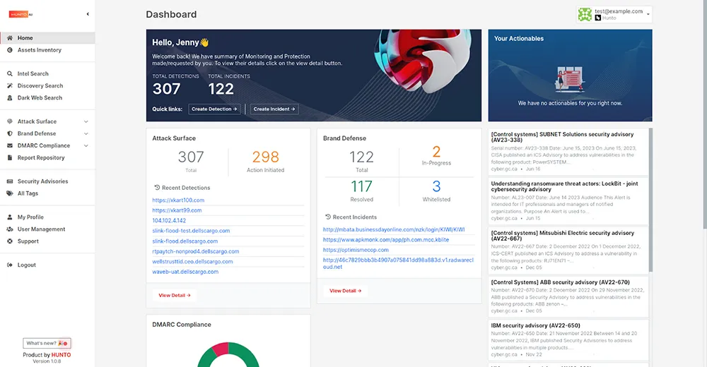- Brand protection: Detects impersonation, brand misuse, and fraudulent domains to safeguard organizational reputation